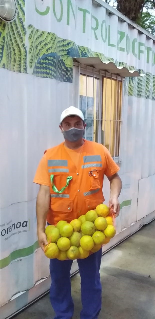 - Decomiso y destrucción de 0.5 kg de frutas cítricas dulce en Cabo Vallejo. Couterett, David